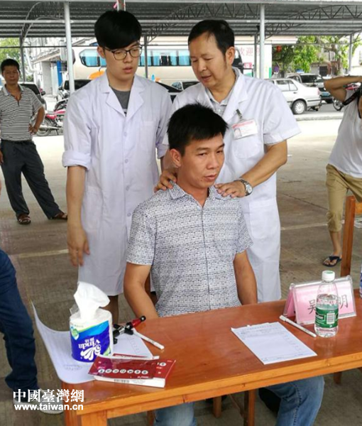 吳一鳴博士(廣州中醫藥大學培養的臺灣中醫學博士,擅長推拿按摩,脊柱康復及各類痛癥的治療)義診。(圖片來源:廣州市臺聯)