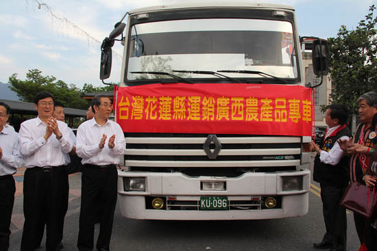 廣西壯族自治區(qū)主席馬飚在農(nóng)產(chǎn)品交接儀式上表示,希望通過(guò)這次采購(gòu)活動(dòng),進(jìn)一步暢通廣西和花蓮縣兩地農(nóng)產(chǎn)品購(gòu)銷(xiāo)渠道,使兩地農(nóng)產(chǎn)品的貿(mào)易合作常態(tài)化,通過(guò)對(duì)花蓮縣農(nóng)產(chǎn)品的推介,引導(dǎo)廣西果農(nóng)、茶農(nóng)引進(jìn)新品種、改良品質(zhì),提高種植業(yè)的運(yùn)銷(xiāo)水平和經(jīng)濟(jì)效益!肮鹗菑V西的簡(jiǎn)稱(chēng),花蓮的第一個(gè)字是‘花’,如今廣西與花蓮合作越來(lái)越緊密,正如‘桂花香千里’那樣美好!