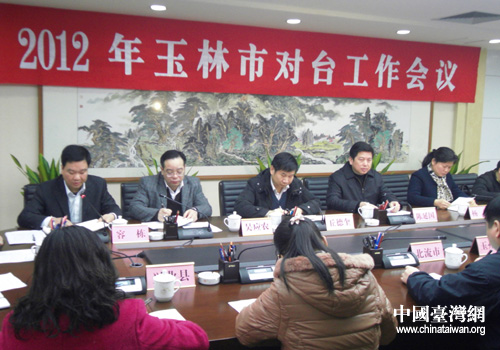 中國臺灣網2月29日玉林消息 2月29日上午,廣西玉林市召開2012年全市對臺工作會議,傳達貫徹自治區臺辦主任工作會議精神,總結去年對臺工作,部署2012年工作。玉林市委副書記陳延國,市委常委、統戰部部長楊紅,副市長丘德奎出席會議。