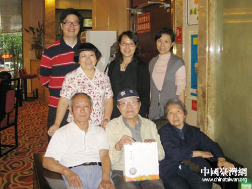 黎老先生(中)、其長子黎詩嵐(后排左一)與親友及臺辦干部合影留念。(李秀昌 攝)