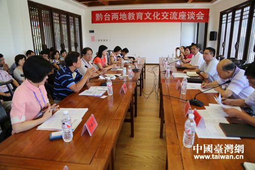 中國臺灣網8月31日貴陽消息 日前,“黔臺兩地教育文化交流座談會”在貴陽花溪孔學堂舉行。貴州省臺辦處長成高榮,貴陽市臺辦副主任劉筑琪、臺灣教育參訪團全體成員、貴陽一中及北師大貴陽附小等學校代表們參加座談會。