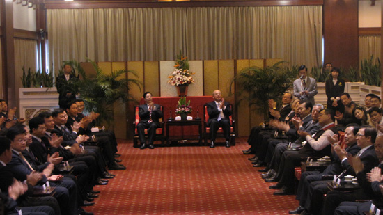 去年5月,廣西壯族自治區(qū)主席馬飚率領(lǐng)1500人代表團訪臺,馬飚也成為大陸第一個訪臺的正省級官員。郭聲琨此行,使廣西成為大陸第一個實現(xiàn)黨政“一把手”都到臺交流的省份。