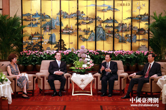 中國臺灣網9月16日南京消息 中共江蘇省委書記梁保華今天中午在南京金陵飯店會見了受邀參加“江蘇臺灣周”的中國國民黨榮譽主席連戰夫婦。(記者 鐘寶華)