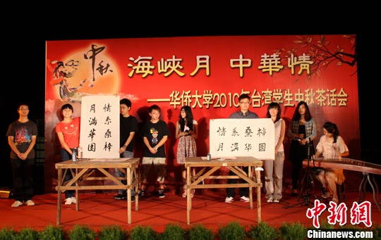 華僑大學(xué)副校長關(guān)一凡到場與同學(xué)們共同聯(lián)歡,他表示,“華大現(xiàn)有臺灣學(xué)生108名,其中,今年的臺灣新生有36名”。華大臺灣學(xué)生中秋茶話會至今已經(jīng)舉辦了十幾屆,不僅成為了弘揚校園文化的平臺,也有利于兩岸學(xué)子、海內(nèi)外學(xué)生更好的交流。 (孫虹 雷偉軍)