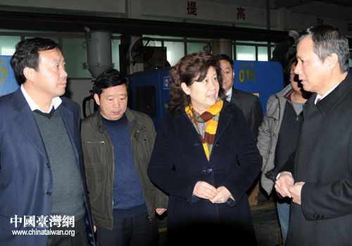 山東省臺辦主任張雪燕在泰安臺資企業泰盟電器考察調研。(圖片來源:山東省臺辦)