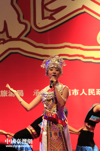 中國臺(tái)灣網(wǎng)8月25日恩施消息 第三屆湖北恩施生態(tài)文化旅游節(jié)暨2012恩施女兒會(huì)即將開幕,恩施市山民歌匯25日晚間如期上演。精彩的節(jié)目不僅吸引了眾多恩施市民前來觀看,前來觀賞節(jié)目的臺(tái)灣少數(shù)民族代表也臨時(shí)起興,登臺(tái)獻(xiàn)演兩個(gè)節(jié)目,一展島內(nèi)少數(shù)民族歌舞的天賦。 (中國臺(tái)灣網(wǎng)記者 楊麗)