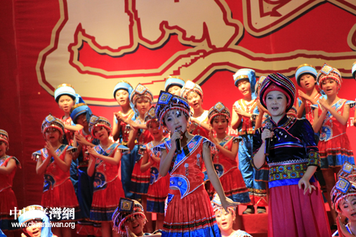 恩施市山民歌匯25日晚間上演,圖為臺(tái)灣少數(shù)民族代表登臺(tái)表演。(中國臺(tái)灣網(wǎng) 楊麗 攝)