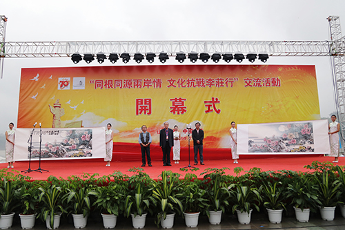 晏永和宣布活動開幕。王銘暉在致辭中說,在宜賓李莊隆重舉行“同根同源兩岸情?文化抗戰李莊行”主題活動,共同舉紀念中國人民抗日戰爭暨世界反法西斯戰爭勝利70周年,有著特別的意義。70多年前,在民族危亡的關鍵時刻, 處于西南邊陲的古鎮李莊發出“同大遷川,李莊歡迎;一切需要,地方供給。”16字電文,從此義無反顧地肩負起了文化救國的歷史重任,用博大胸懷和氣量接納了中國國立中央研究院、中央博物院等科研院所學校,以及梁思成、林徽因、李濟、傅斯年、董作賓等一批學術大家和無數的革命知識分子。李莊在抗戰中錘煉出的愛國主義精神、抗戰必勝的信念、矢志求真的毅力、民族復興的壯志等寶貴的精神財富,正在兩岸同胞代代相傳,也因為這份深深的李莊情節,將內陸城市宜賓與臺灣同胞緊緊地聯系在了一起。雙方交流合作不斷加強,經濟聯系日益密切,文化交流更趨活躍。希望以此為契機,共同把李莊打造為兩岸文化交流的又一個重要基地,為弘揚傳承李莊抗戰文化精神作出新的更大貢獻。