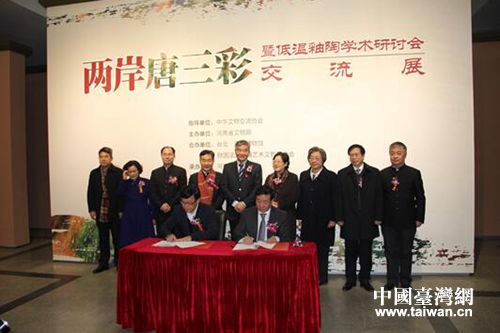 中國臺(tái)灣網(wǎng)1月20日鄭州訊 1月19日上午,由中華文物交流協(xié)會(huì)指導(dǎo)、河南省文物局主辦、河南博物院與臺(tái)北歷史博物館及鴻禧藝術(shù)文教基金會(huì)共同承辦的“會(huì)古通今——兩岸唐三彩暨低溫釉陶學(xué)術(shù)研討會(huì)及兩岸唐三彩交流展”在河南博物院隆重舉行。國臺(tái)辦交流局副局長李京文、中華文化交流協(xié)會(huì)副會(huì)長、國家文物局副局長劉曙光、河南省文物局局長陳愛蘭、省臺(tái)辦副主任尚潤澤、河南省博物院院長田凱,臺(tái)北歷史博物館館長張譽(yù)騰、臺(tái)灣鴻禧藝術(shù)文教基金會(huì)廖桂英女士,以及兩岸文博機(jī)構(gòu)和高校的40余位古陶瓷及低溫釉陶領(lǐng)域的專家學(xué)者出席開幕式。劉曙光、陳愛蘭、張譽(yù)騰、田凱等兩岸文物界有關(guān)領(lǐng)導(dǎo)做了熱情洋溢的致辭。