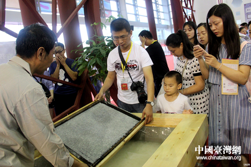 第六屆江蘇書展上的文化推廣活動——現場古法造紙演示。(中國臺灣網記者 李杰 攝)