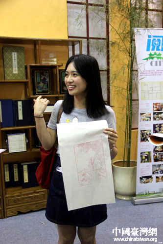 臺灣同學自己動手用雕版印刷圖畫。(中國臺灣網記者 李杰 攝)