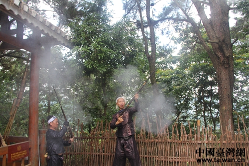 岜沙在寨子門口鳴槍歡迎兩岸嘉賓(中國臺灣網 蕪同 攝)