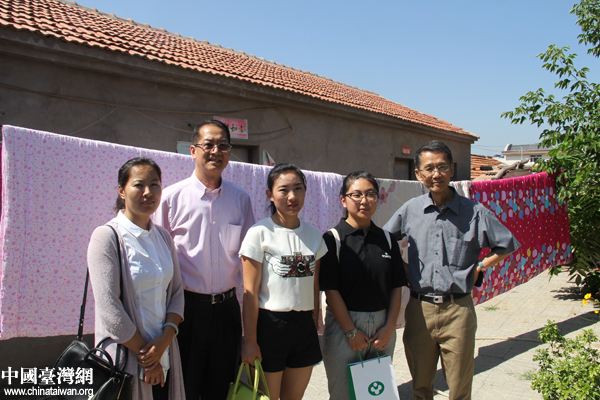 滕鴻年(左一)、吳國(guó)禎(右二)與克旗團(tuán)委書記郭玉玲(左二)到張穎家中走訪。(中國(guó)臺(tái)灣網(wǎng) 王思羽 攝)