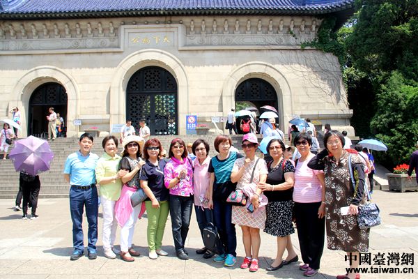 臺灣新北市宗親文化暨社區發展鎮江交流團成員在中山陵合影。(中國臺灣網 李杰 攝)