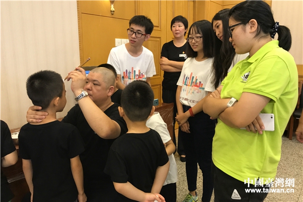 兩岸青年觀看老師為小學員化妝。(中國臺灣網 趙苗青 攝)