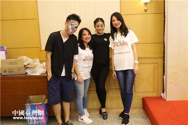 畫好京劇臉譜的兩岸青年合影留念。(中國臺灣網 趙苗青 攝)