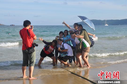 臺北海南同鄉會的青年學生在亞龍灣合影。 周鳳婷 攝