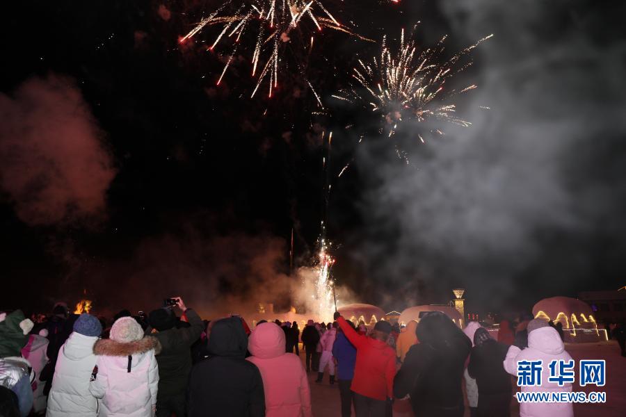 2021年1月1日凌晨,游客在黑龍江省漠河市北極鎮北極村參加跨年活動。新華社發(王景陽 攝)