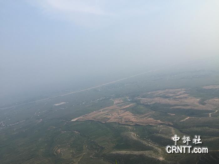 從山頂望下,可見南水北調中線工程橫穿華北平原而過。(中評社)