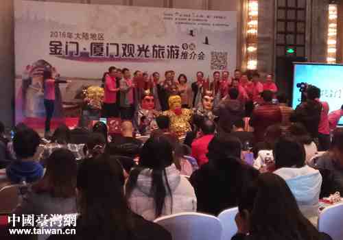 推介會(huì)現(xiàn)場,由金門民俗表演——電音三太子為整場推介會(huì)開啟序幕。來自金門和廈門旅游局的負(fù)責(zé)人向參會(huì)的旅行商全面推介金門、廈門的旅游資源、產(chǎn)品、線路、發(fā)展政策等。同時(shí),用播放宣傳片、發(fā)放宣傳資料、業(yè)務(wù)洽談等形式,生動(dòng)形象的展示各個(gè)景點(diǎn)的獨(dú)到之處。