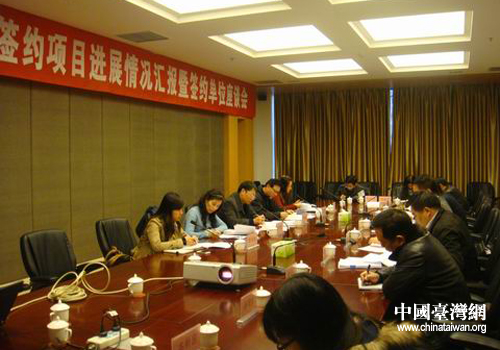 徐元宏一行聽取襄陽市招商活動簽約項目進展情況。(襄陽市臺辦 崔有理 攝)