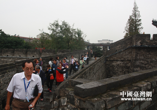 兩岸新媒體荊楚行采訪團來到古城墻內。(中國臺灣網 段雯婷 攝)