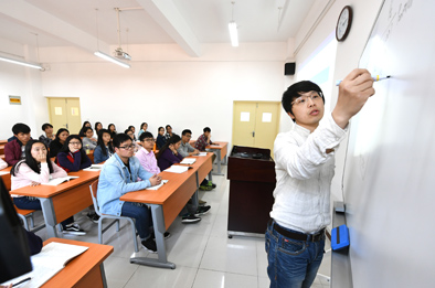▲黃志偉在湖北經濟學院給學生上課(新華社記者 程敏 攝)。