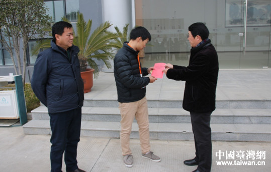 中國臺灣網(wǎng)1月29日武漢訊 春節(jié)前夕,黃陂區(qū)政協(xié)副主席陸建軍帶領(lǐng)區(qū)政協(xié)港澳臺僑專委會、區(qū)臺辦及相關(guān)街道的負(fù)責(zé)人,深入臺胞臺屬家中和臺資企業(yè),走訪慰問在陂臺胞、臺屬和臺企,給他們送去新春祝福。