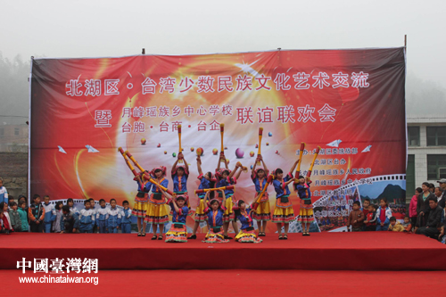 中國臺灣網12月5日郴州消息 日前,由湖南郴州市北湖區委統戰部、北湖區臺辦主辦的北湖區、臺灣少數民族文化藝術交流聯誼聯歡活動在郴州開展。郴州的30多名臺企臺商代表在北湖區月峰瑤族鄉中心學校參加了此次聯誼聯歡會。瑤族同胞跳起歡快的《瑤族長鼓舞》、《瑤族婚嫁舞》歡迎臺灣同胞;臺商用閩南語演唱《愛拼才會贏》表達了在郴創業的愉悅心情。臺商代表還向該校學生公寓樓建設項目捐贈了6萬元愛心款。(中國臺灣網、郴州市北湖區臺辦聯合報道)