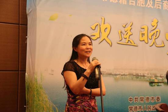 參訪團(tuán)團(tuán)長(zhǎng)、臺(tái)灣湖南常德同鄉(xiāng)會(huì)會(huì)長(zhǎng)肖云霞女士發(fā)言