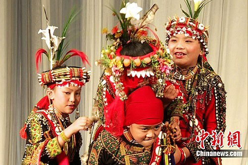 4月18日晚,“兩岸情·臺灣原住民小學(xué)傳統(tǒng)歌謠會”在南京大學(xué)大禮堂拉開帷幕。在天籟般不加任何修飾的童聲和聲中,身著各色原住民服飾的臺東縣霧鹿國小利稻布農(nóng)傳統(tǒng)祭儀歌謠隊和屏東縣口社國小莎卡蘭排灣文化傳承隊為到場的觀眾奉獻了一場90分鐘的臺灣原生態(tài)音樂盛宴。