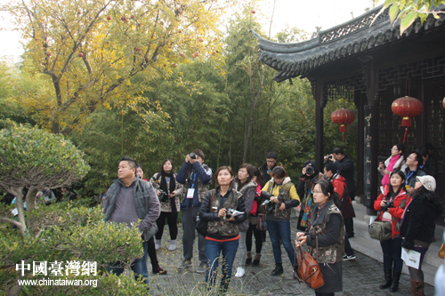 中國(guó)臺(tái)灣網(wǎng)11月28日泰州消息 11月27日下午,“美好江蘇歡樂游”——2012中國(guó)重點(diǎn)網(wǎng)絡(luò)媒體江蘇行采風(fēng)團(tuán)來到了泰州喬園——蘇北地區(qū)現(xiàn)存最早的古典園林。