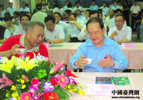 江西省長鹿心社稱贊阿里山茶葉色澤清亮,味道純正。(圖片來源:江西省臺辦)