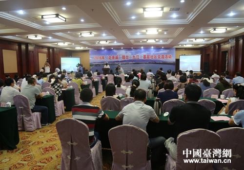 中國臺灣網9月7日九江訊 日前,2016“走親戚”贛臺(九江)基層社區交流活動在潯拉開序幕。來自潯臺兩地的基層社區組織管理人員相聚潯陽,就街道、社區的建設、管理方面進行交流、互相學習。省臺辦副主任何晞、市委副書記占勇出席并致辭。市委常委、常務副市長熊永強主持。市臺辦、潯陽區及有關部門負責人參加會議。