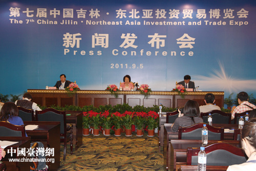 第七屆中國吉林·東北亞投資貿易博覽會新聞發布會在長春舉行。(中國臺灣網 吳斌 攝)