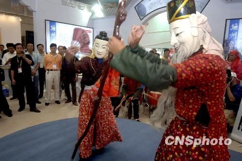 10月29日,殷商時(shí)期的閩西北原始儺舞亮相廈門(mén)文博會(huì),這種民間舞蹈古樸神秘、粗獷奔放,被人類(lèi)學(xué)、歷史學(xué)及藝術(shù)學(xué)視為活化石。當(dāng)日,第二屆海峽兩岸(廈門(mén))文化產(chǎn)業(yè)博覽交易會(huì)在廈門(mén)開(kāi)幕。 中新社發(fā) 王東明 攝
