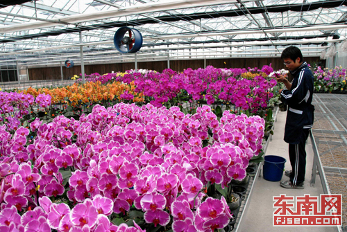臺資農(nóng)業(yè)企業(yè)漳州鉅寶生物科技有限公司員工正在管理蝴蝶蘭