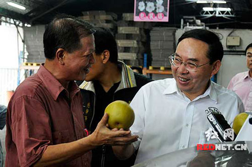 湖南和苗栗的情誼,今后將通過農(nóng)業(yè)經(jīng)濟等領(lǐng)域的合作,讓兩地百姓互惠而得以繼續(xù)。正在臺灣參訪的中共湖南省委副書記梅克保今天走訪苗栗農(nóng)會,他表示歡迎農(nóng)會帶技術(shù)來湖南辦農(nóng)場,或通過直銷把苗栗水果帶到湖南。隨行的湖南省連鎖商業(yè)協(xié)會會長胡子敬亦當場表態(tài),將全力以赴,組織湖南超市設立臺灣卓蘭鎮(zhèn)水果專柜。