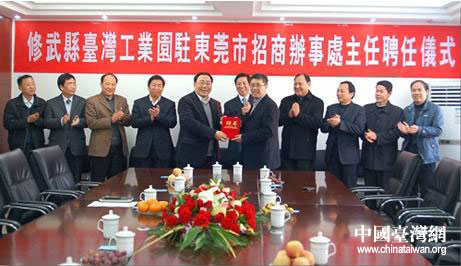 焦作市修武縣臺(tái)灣工業(yè)園駐東莞市招商辦事處主任聘任儀式日前舉行。圖片來源:焦作市臺(tái)辦
