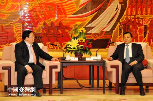 山東省政府副秘書長張忠明,省臺辦主任張雪燕、省經信委巡視員李建生、省商務廳副廳長劉曉江、浪潮集團總裁辛衛華參加會見。(圖片來源:山東省臺辦)