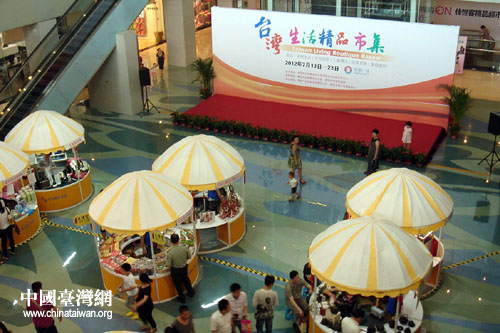 中國臺(tái)灣網(wǎng)7月16日青島消息 日前,由國臺(tái)辦海峽經(jīng)濟(jì)科技合作中心主辦,青島市臺(tái)辦、青島市市南區(qū)政府協(xié)辦的“2012臺(tái)灣生活精品市集”在青島百麗廣場(chǎng)隆重開幕。在為期11天的展期中,來自臺(tái)灣的60余家知名企業(yè)將展出精致、創(chuàng)意、休閑、時(shí)尚、科技類的數(shù)百款寶島特產(chǎn)。