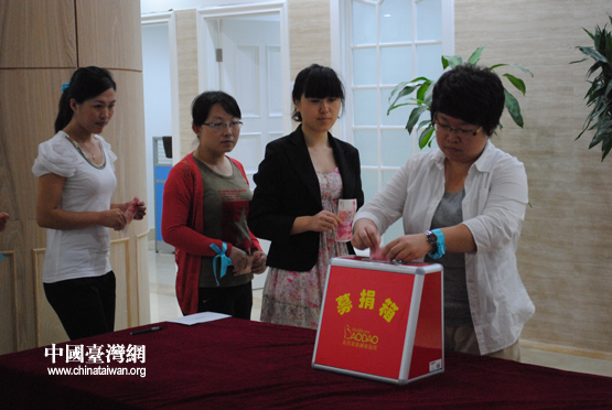 寶島員工踴躍登記捐款(北京市臺辦 郭寧 攝)