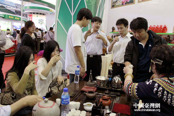 9月28日,由農業部海峽兩岸農業交流協會與臺灣嘉義市農會合作主辦的臺灣精品館亮相第十屆中國國際農產品交易會。圖為參觀者品嘗臺灣阿里山高山茶。(中國臺灣網記者 普燕 攝)