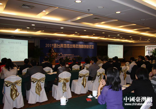 2012連臺(tái)兩地杰出青年創(chuàng)意創(chuàng)業(yè)論壇現(xiàn)場(chǎng)。(圖片來(lái)源:大連市臺(tái)辦)