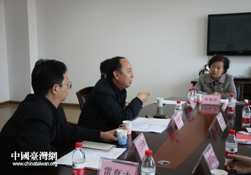 丹東市外經(jīng)貿(mào)局的負(fù)責(zé)同志介紹對(duì)朝貿(mào)易情況。(圖片來源:丹東市臺(tái)辦)