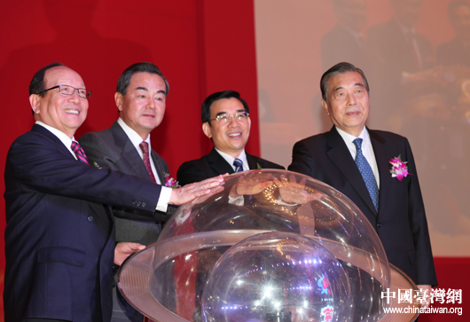 中臺辦、國臺辦主任王毅,北京市委副書記、代市長王安順,中國國民黨副主席蔣孝嚴與臺北世貿中心董事長王志剛共同啟動開幕式。(中國臺灣網 王思羽 攝)