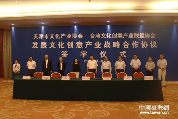 中國臺灣網(wǎng)7月4日天津消息 7月4日,天津市文化產(chǎn)業(yè)協(xié)會與臺灣文化創(chuàng)意產(chǎn)業(yè)聯(lián)盟協(xié)會在天津簽署發(fā)展文化創(chuàng)意產(chǎn)業(yè)戰(zhàn)略合作協(xié)議,雙方將以此加強(qiáng)文化創(chuàng)意產(chǎn)業(yè)交流與合作,共同開拓兩岸文創(chuàng)產(chǎn)業(yè)未來。