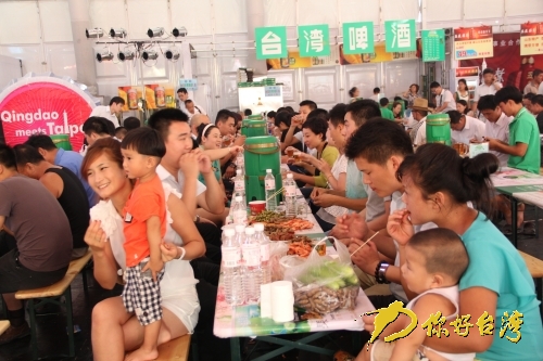 你好臺灣網8月24日消息 (通訊員 李慧 王霞)走進啤酒城南門向前約300米,在青島國際會展中心6號館南廣場遠遠望去,青島與臺北兩大城市的代表性地標“五月的風”和101大樓雕塑,與斜跨在展館門頭醒目的“臺灣”二字相輝映,闡釋“青島遇見臺北”的主題。正在如火如荼進行的第23屆青島國際啤酒節上,獨具風情的臺北演藝館吸引了眾多游客的目光,演出場場爆滿,“哈”兩岸美酒,品臺灣風情,兩岸游客共同舉杯上演著一場場兩岸一家親的溫馨與激情的畫卷。
