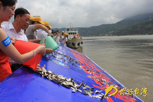 你好臺灣網福州9月15日消息 (記者 張希達)14日上午,以“兩岸攜手增殖放流,齊心共護海洋生態(tài)”為主題的2013海峽兩岸漁業(yè)資源增殖放流活動在福州海事局馬江處碼頭及閩江口川石島立樁礁附近海域啟動。此次增殖放流活動期間,共計向臺灣海峽投放372萬尾魚苗。包括海水魚類品種為大黃魚50萬尾、真鯛15萬尾、海蜇200萬尾、中國鱟2萬只、東風螺55萬個;淡水魚類品種為鰱魚15萬尾、鳙魚10萬尾、鱸魚10萬尾、毛蟹15萬只。以養(yǎng)護兩岸漁業(yè)資源,進一步促進兩岸生態(tài)環(huán)境保護,維持兩岸漁業(yè)永續(xù)發(fā)展。