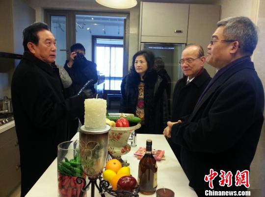 隨后,陳云林和林豐正一行又來到臺商居住區,興致勃勃地走進了一間樣板房參觀。他們不時地向工作人員詢問,在此居住的臺商們的生活感受。在了解到臺商業主經常在小區內開展臺灣特色的休閑娛樂活動后,他們對于吉田國際所打造的臺商精神家園的氛圍表示肯定和贊賞。